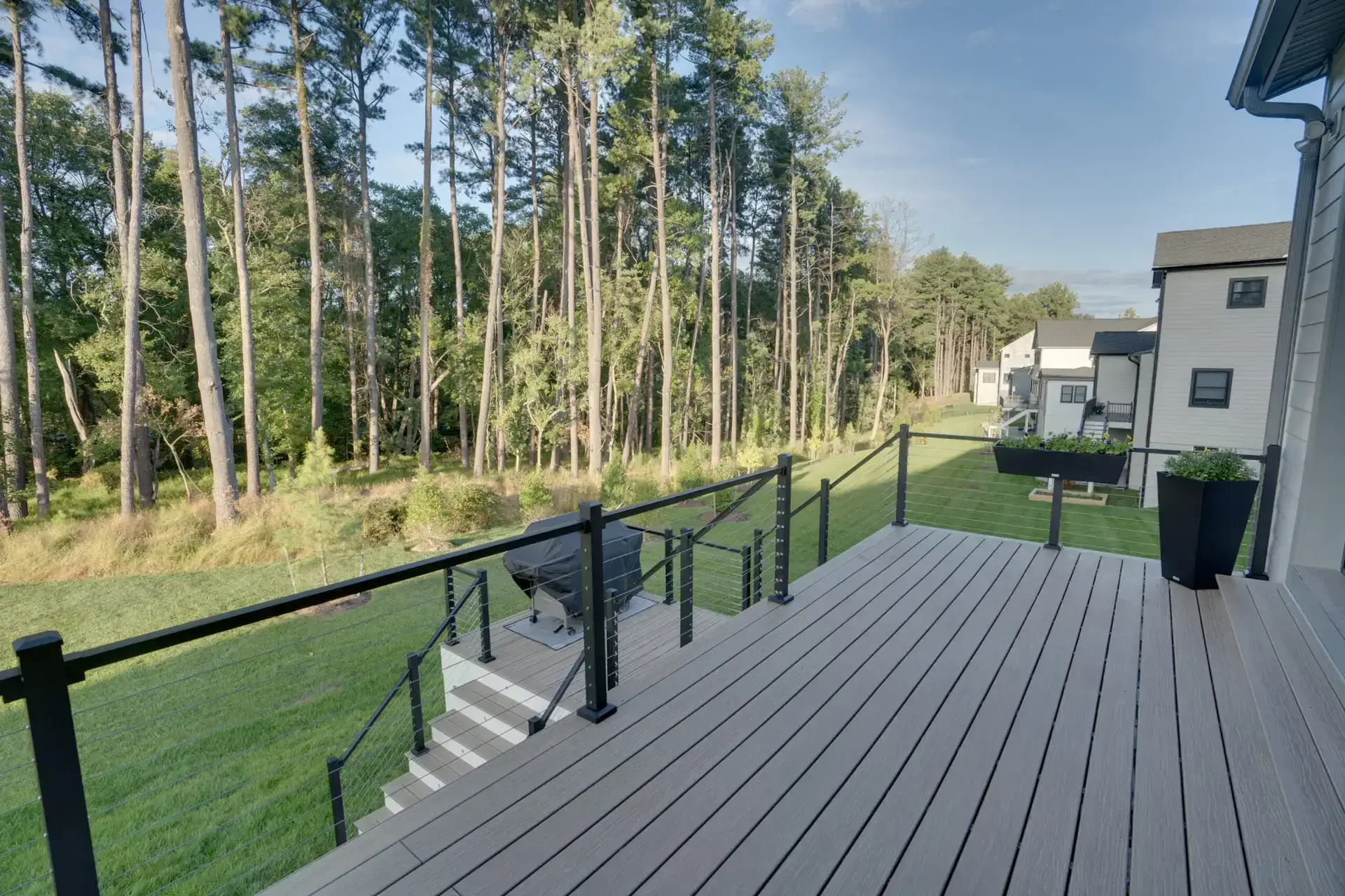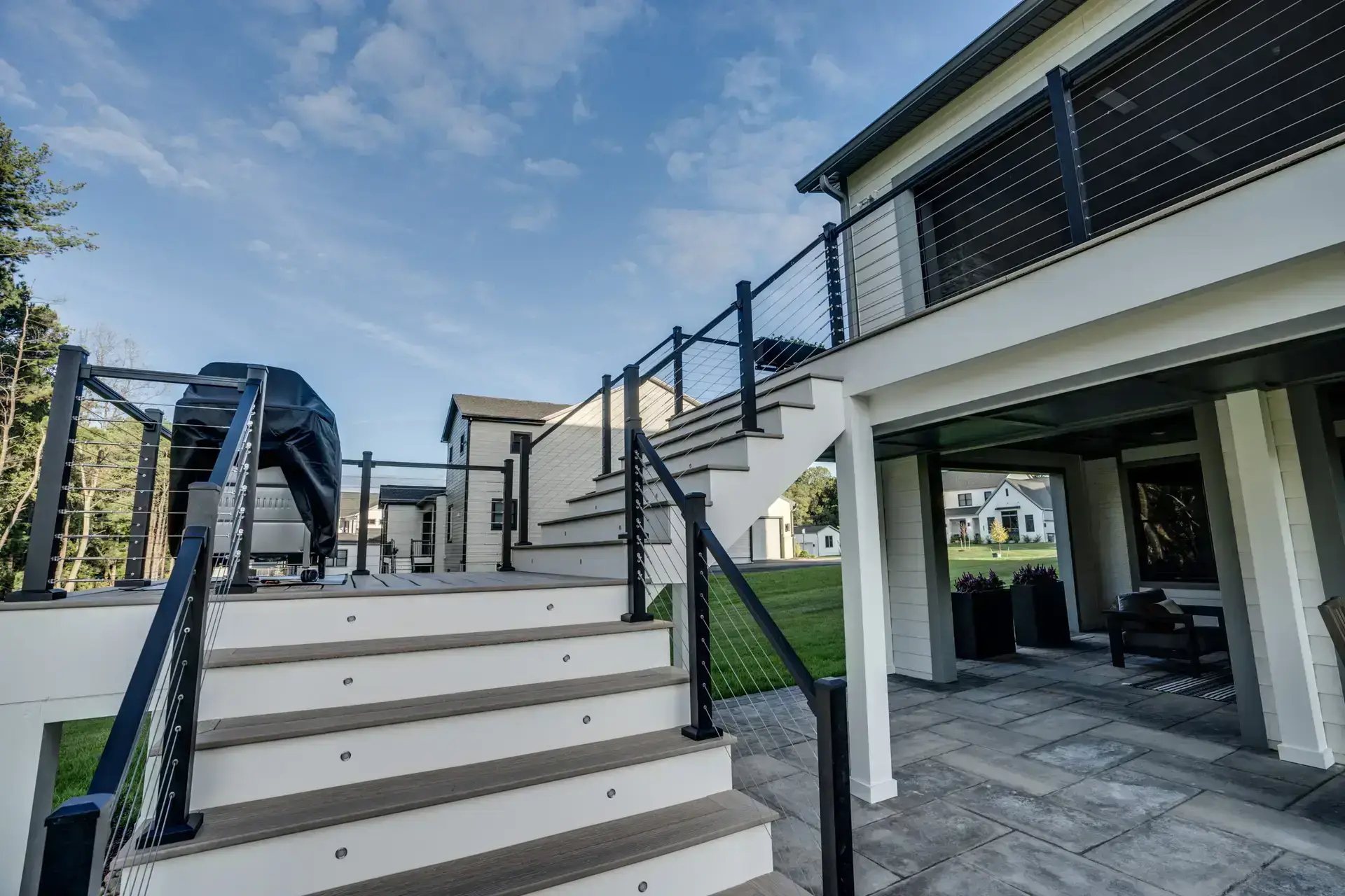 Our project in Great Falls, VA, stands as a testament to our dedication to crafting outdoor spaces that blend durability, style, and functionality. From the premium Timbertech decking to the meticulously crafted Techo-Bloc paver patio, this project redefines outdoor elegance and comfort.
